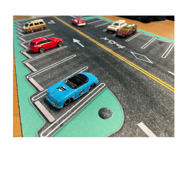 70x35cm TurboPad carpet with Tokyo-style design, 20 parking spaces. Traffic in the left lane and many details that you cannot miss. Scale for cars 1/64